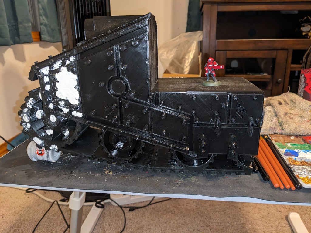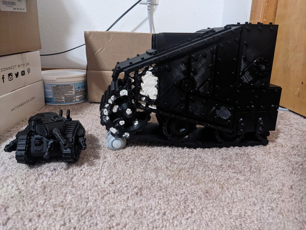 As per a recent weekly news letter, the Capitol Imperialis project is looking amazing! This thing is a monster! It is just absolutely massive and I am loving it! I’ve only completed the first 1/3 of the right track section and already I’m at 135 hours and 23 minutes of print time with another piece printing away! The clay on the first piece were light cosmetic damages that had to be patched by my print settings getting reset with an update to my slicer software, but I have it dialed back in.