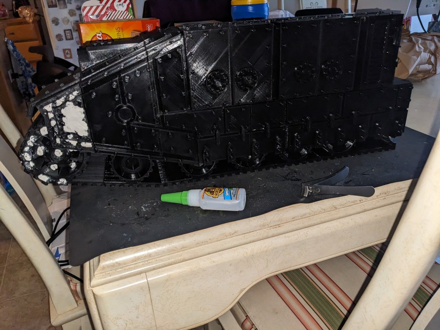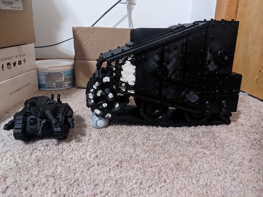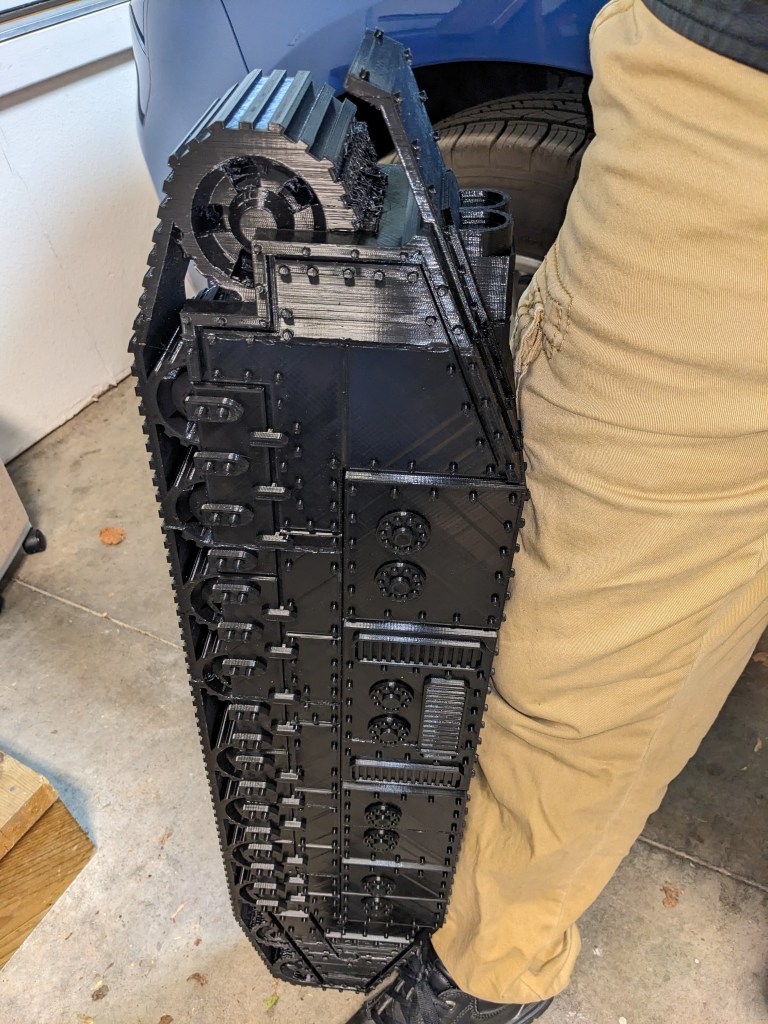 1090 printing hours in and we are underway on the main body! About 900 was required for the left and right tracks alone. I finished fusing the pieces together with a wood burner on the second track as well now. Currently I am working on printing the titanic storage deck, and am excited to see this thing start to literally come together.
