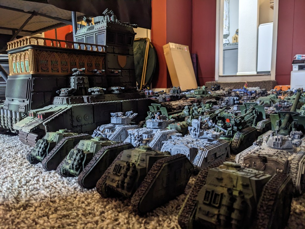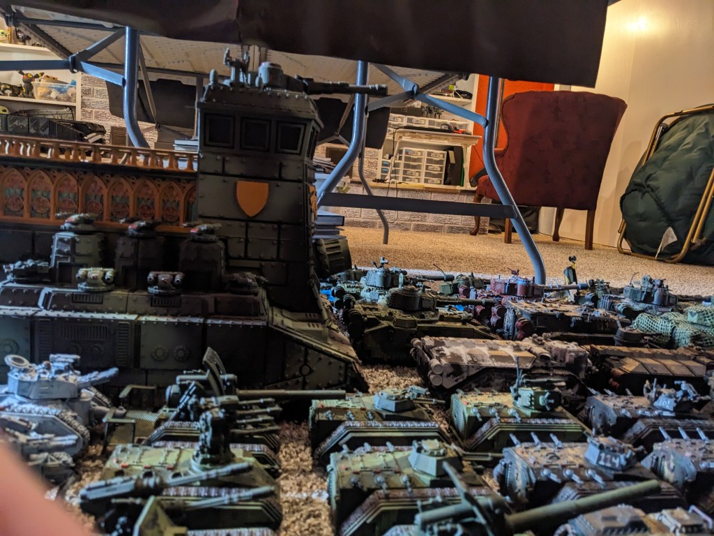 We have been putting lots of traps out, but some took refuge in my tank shelves. They are normally piled high, but since I was taking them out and cleaning them off (and murdering 9 xenos scum) I figured I should do an all vehicle and artillery photoshoot. I haven’t done one before, so it was fun.