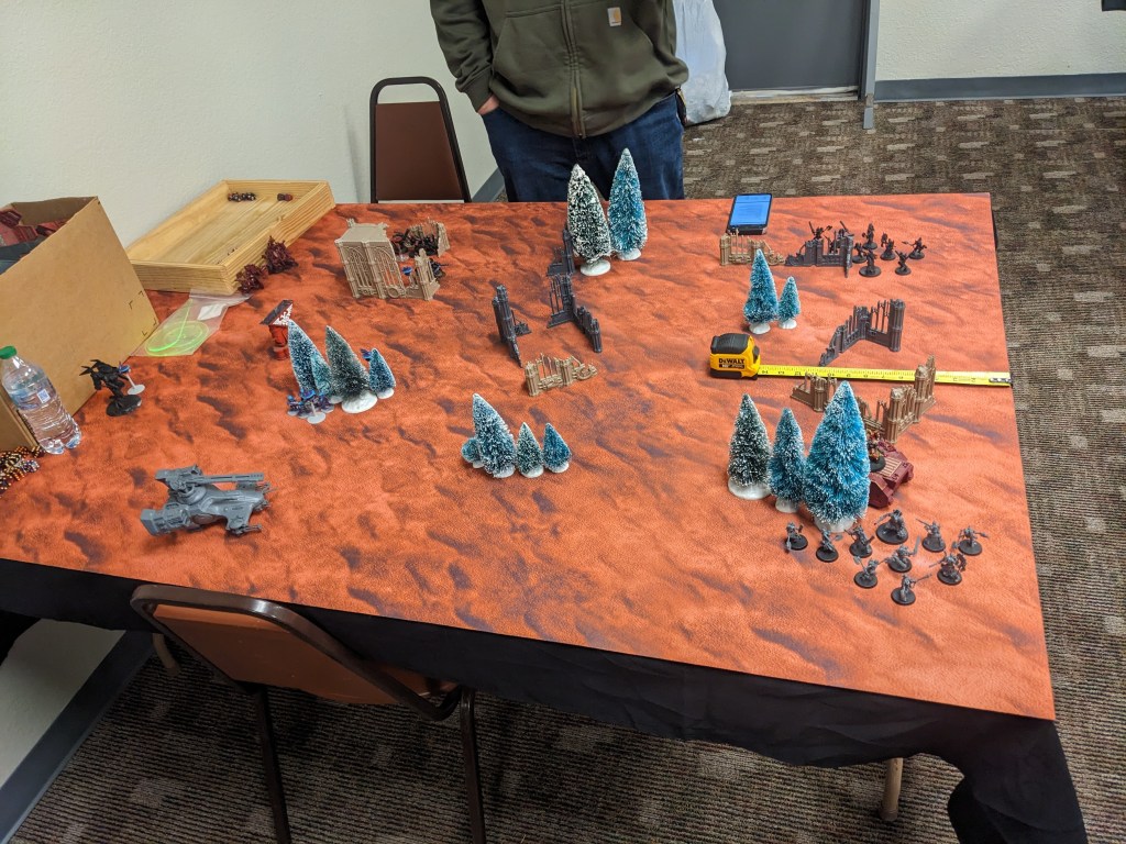 While this was going on, our Tau player prepared to take on the World Eaters.