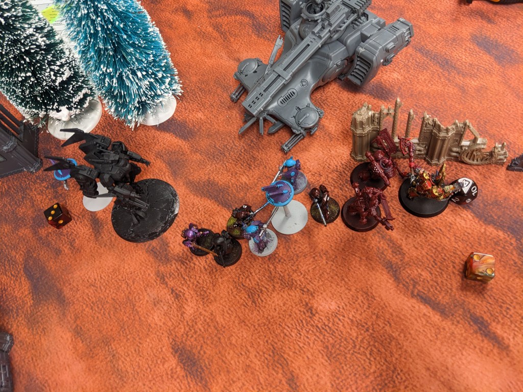 Afterwards, we shook up player matches. Eldar took on Tau with a game of The Hill. Needing to claim a central objective, this was going to be a short range shootout.