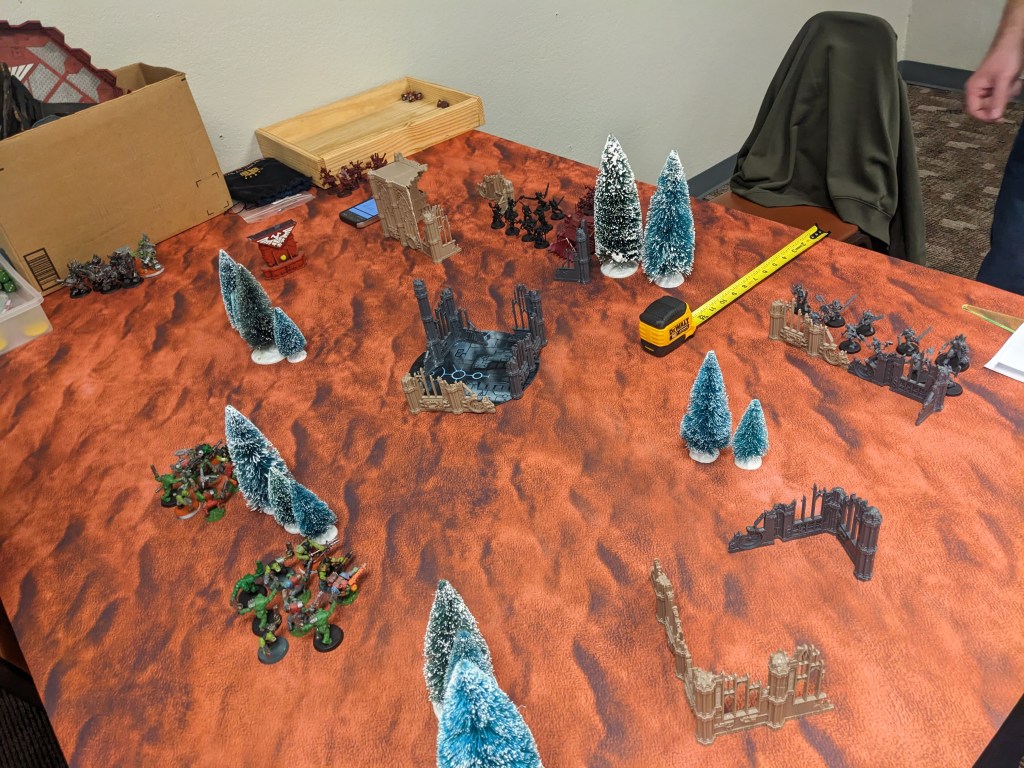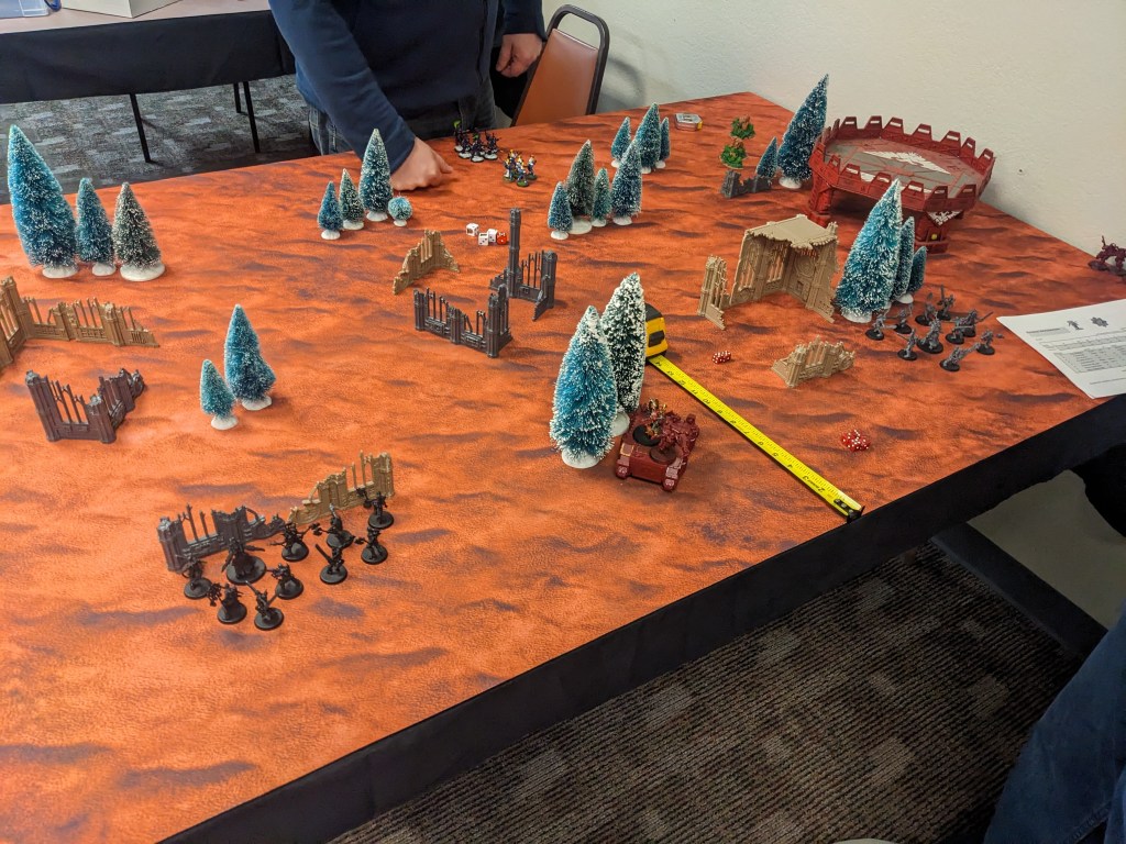 The Ork vs Custode game went very fast with the few models to move around. As such, a second game happened while the Tau vs Khorne was resolved.