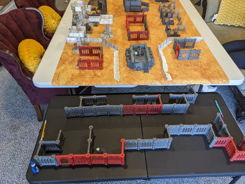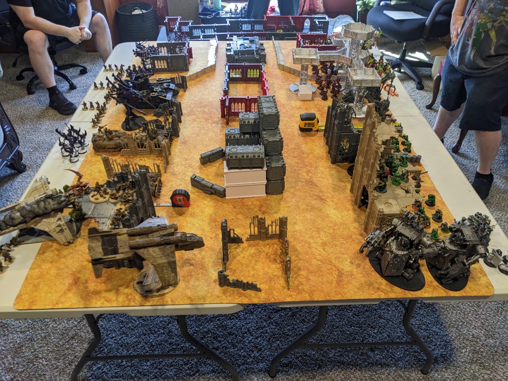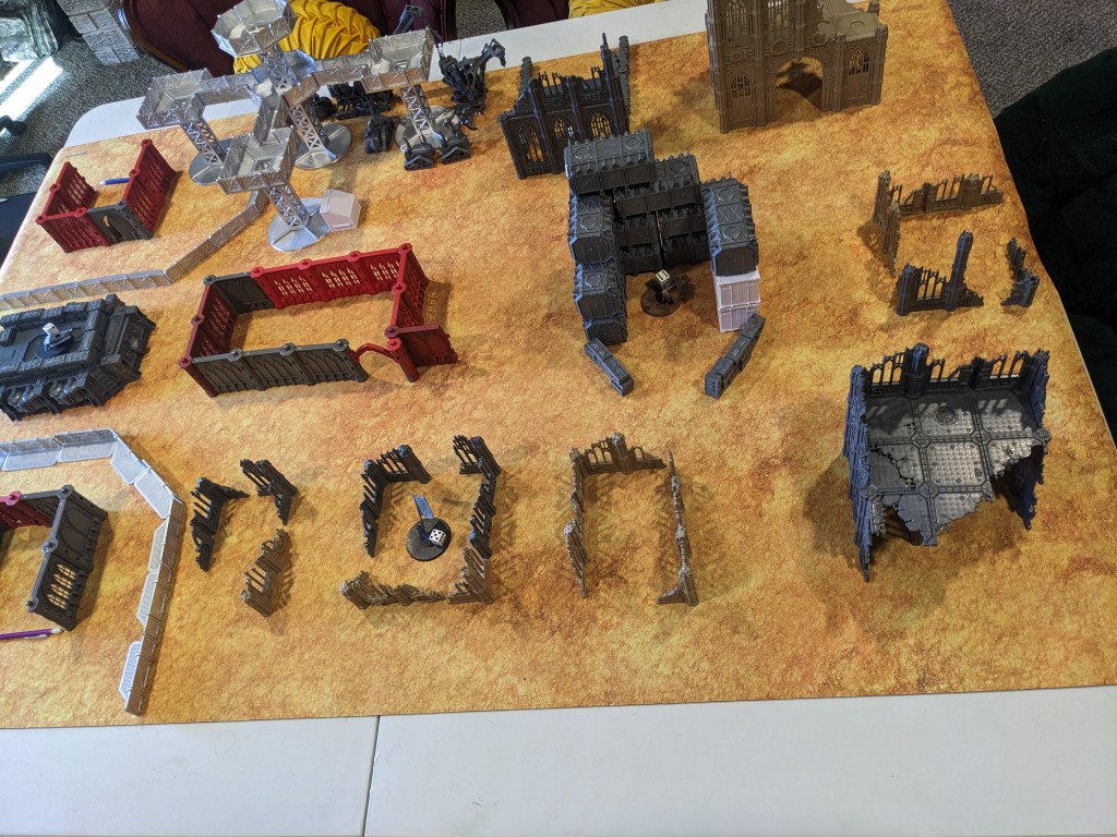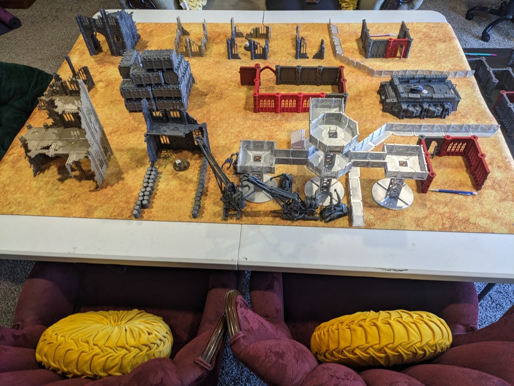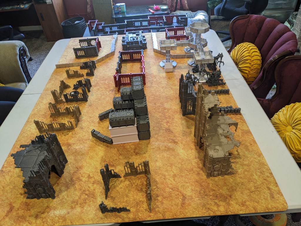 With me playing my Armageddon Steel Legion, I went with a hive city theme. Lots of tall and tightly packed buildings. At 6000 points there would probably be a lot of Titanic units crushing terrain anyways.