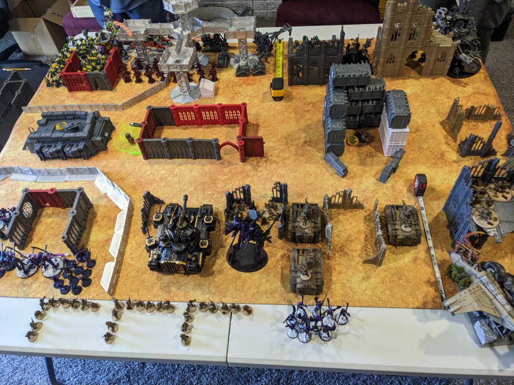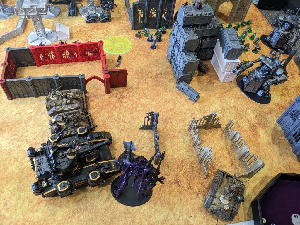 On our side we lost an acceptable 45 out of 55 Guardsmen and 3 out of 3 Chimeras, but the Fortress of Arrogance was only lightly damaged! With Yarrick that was over 1200 points alone! Eldar were board wiped, but if we are being honest it’s an improvement for the Galaxy.