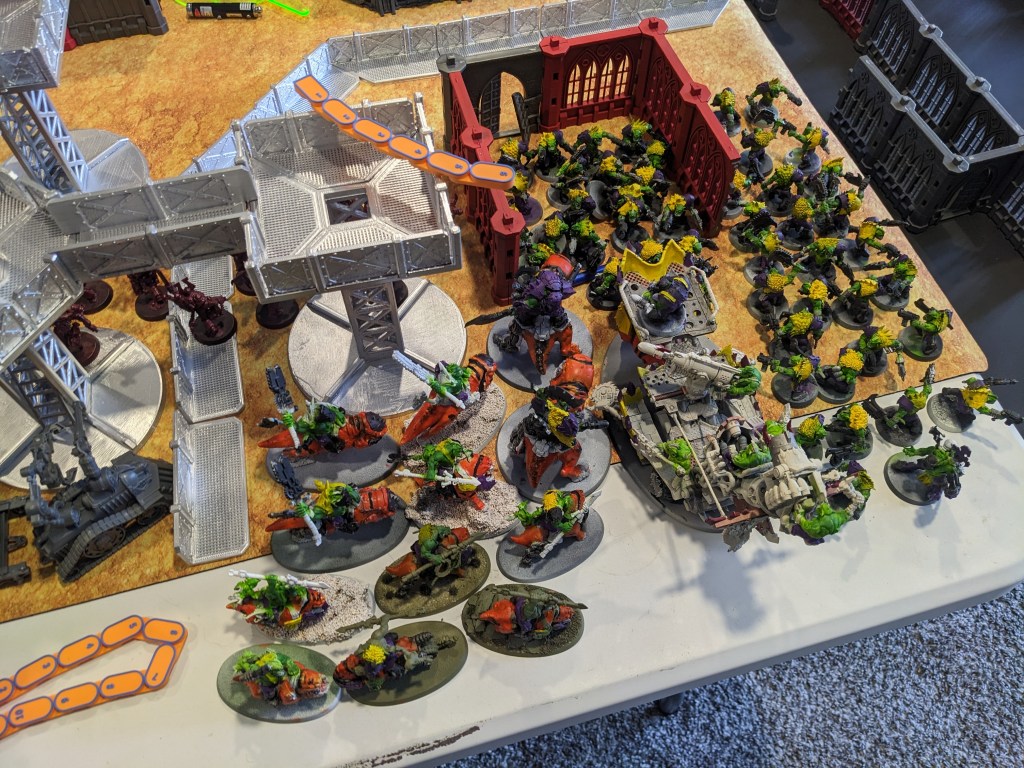 Orks began flooding the basement, bringing their Kill Rigg with them.