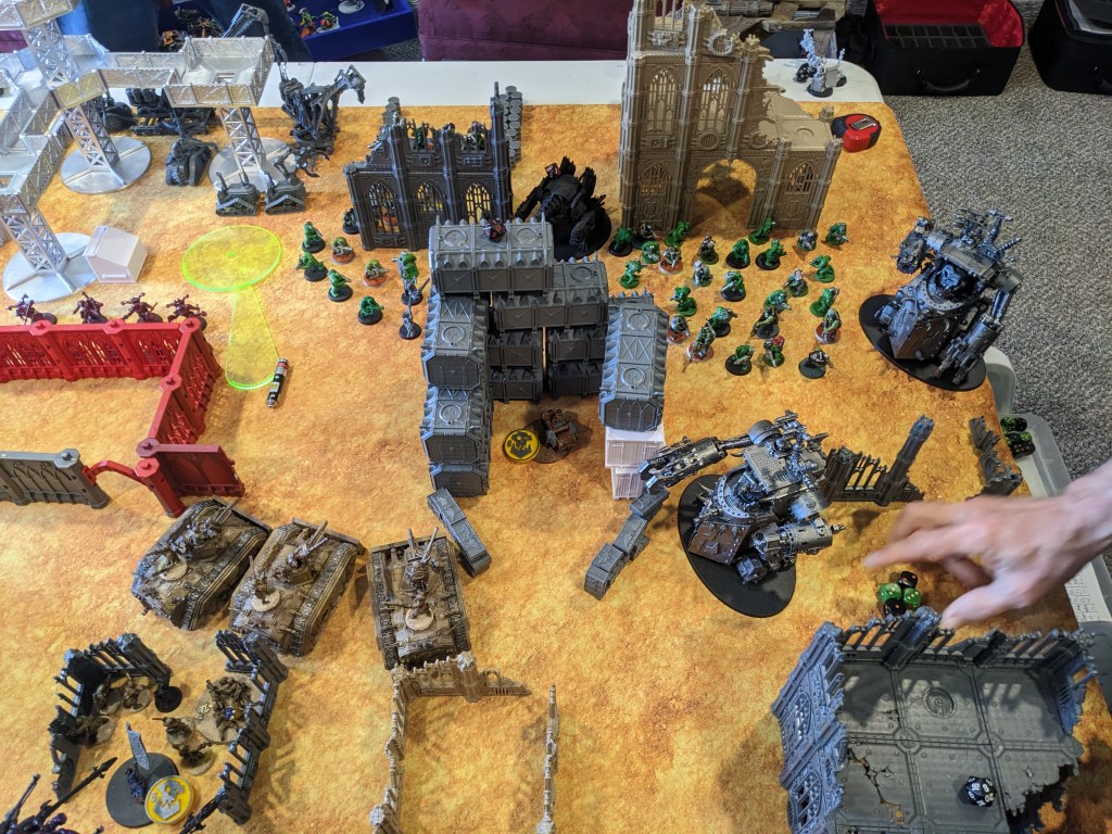 Orks swarmed the objective, using numbers to grab ground given by the Steel Legion.