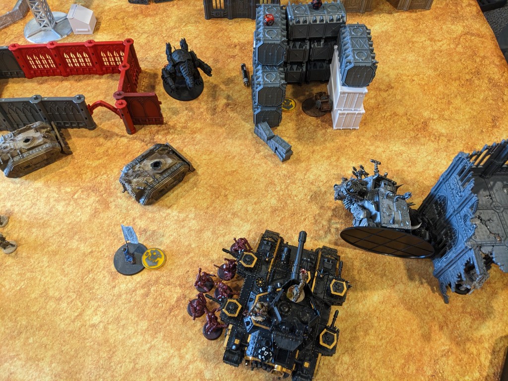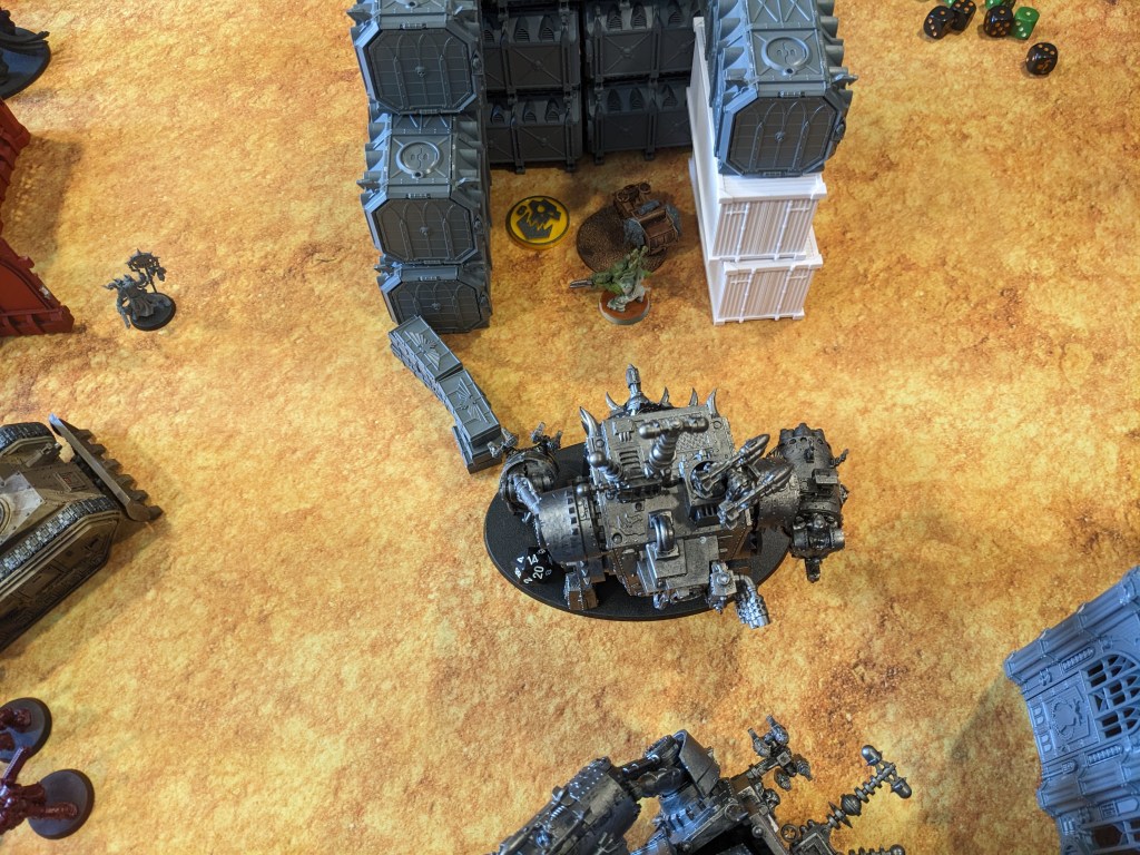Meanwhile, the Fortress of Arrogance simply rolled away from the Berserkers, pivoted to crush the cover Buzzgob was hiding in, and then engaged three priority targets.