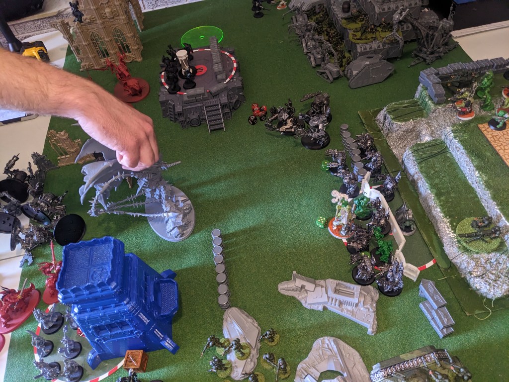 Cadian Shock and Bad Moons win a Moderate Victory, 11 – 7! This game was really close. Had Chaos not taken Initiative to fire first (a solid move given the amount of guns that ignored Cover) and the rate we both scored points they could have potentially won. Also, had they managed to get the Lord Commissar at the end it could have been a draw very easily. Or the Hellbrute get freed up earlier like expected. It was a very close game and could have swung either way from the first dice rolls to the very last rolls.