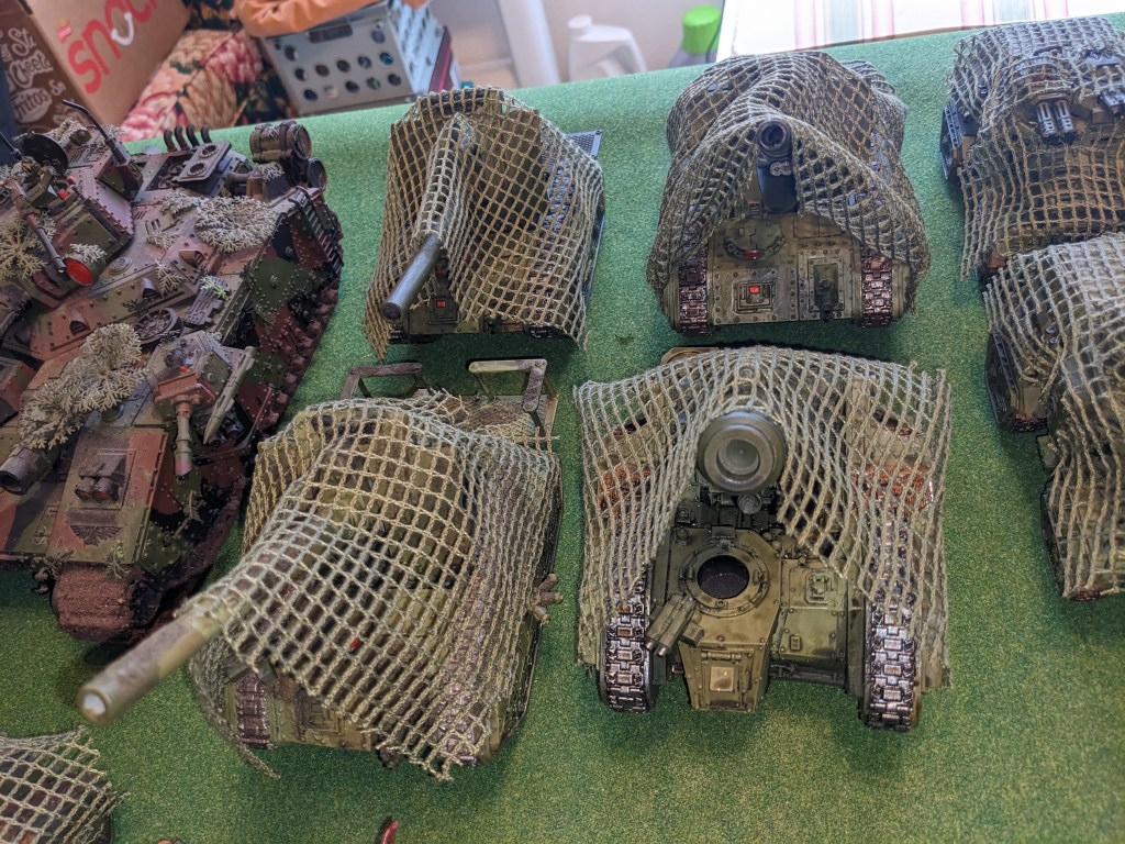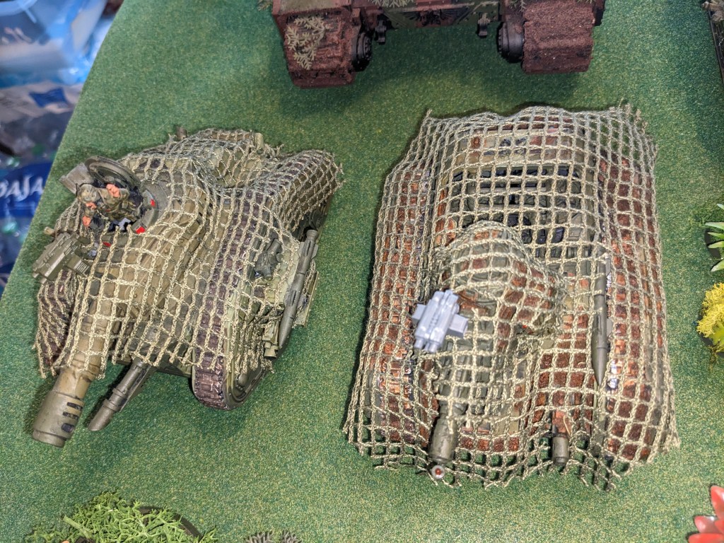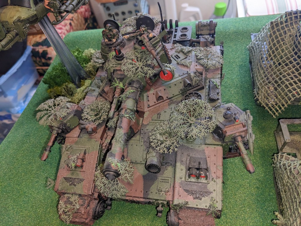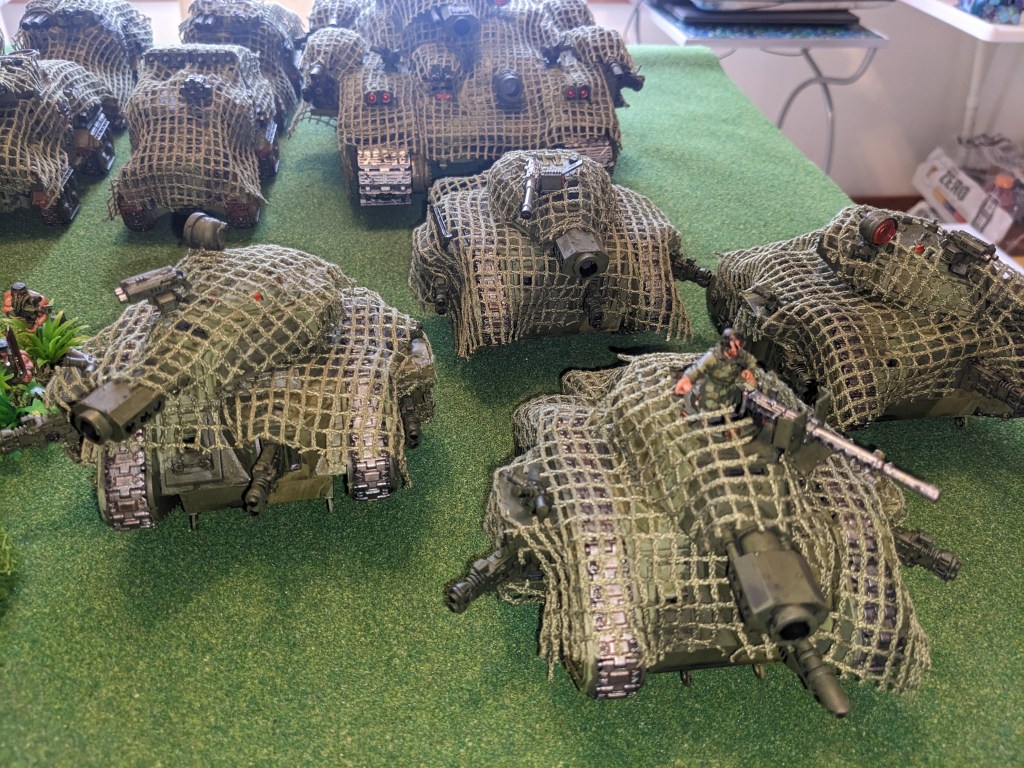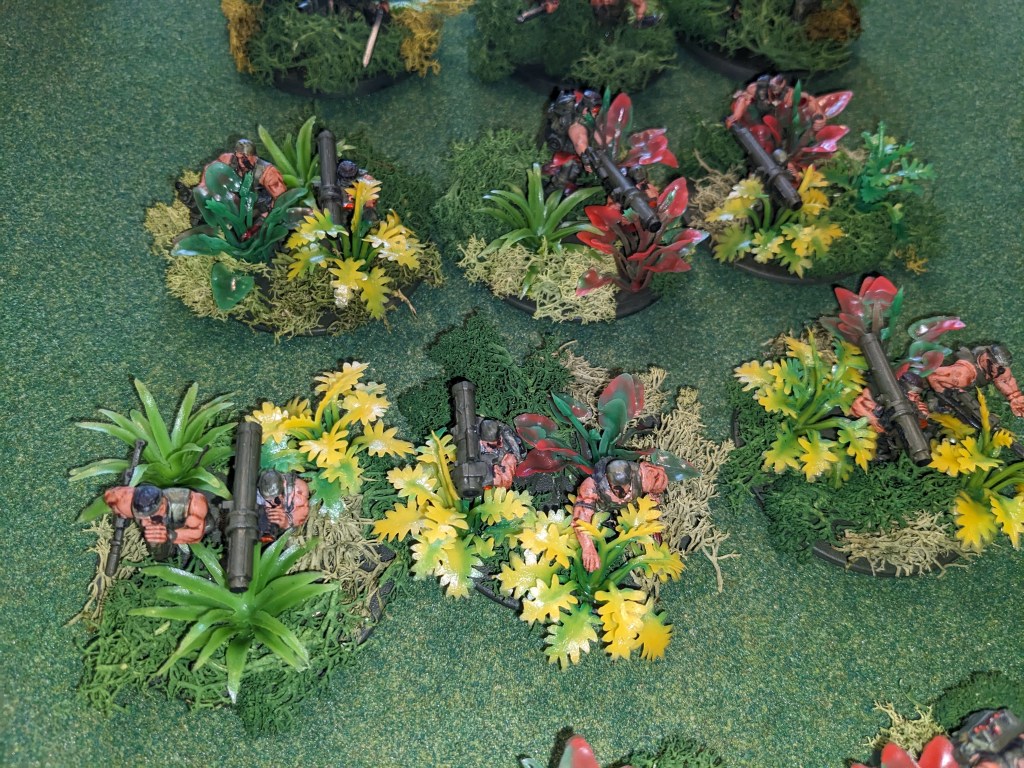 Catacha is clearly populated with Arnold Schwarzenegger’s looking for predators in the jungle. I went with the striped camo face pattern like in many 80’s action movies, ignoring their bulging biceps no doubt giving them away. For Catacha I prioritized close quarter weapons that ignore cover or make swiss cheese out of everything. They share similar camo pattern to that of my Cadians, but I feel from the lore they focus more on stealth so I equipped all of their vehicles with camo netting. While the Hellhammer cannot actually equip it, I felt it was more appropriate to keep with army appearances.