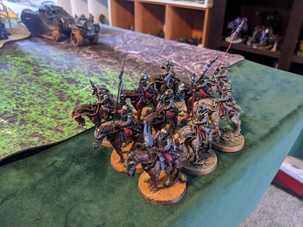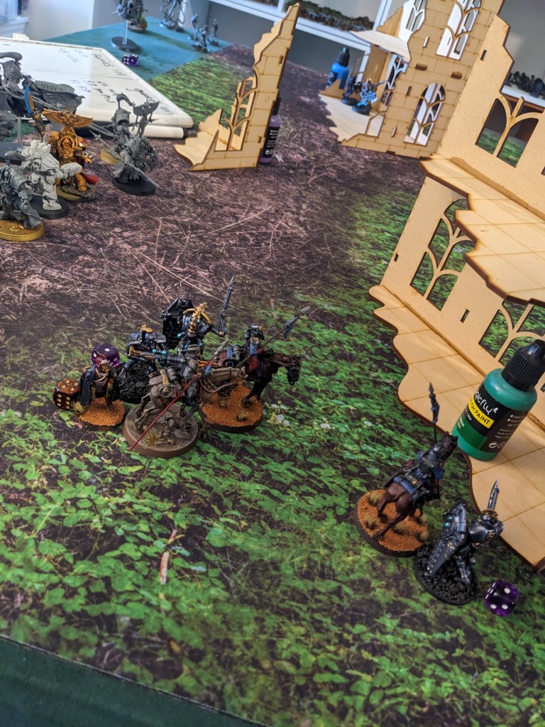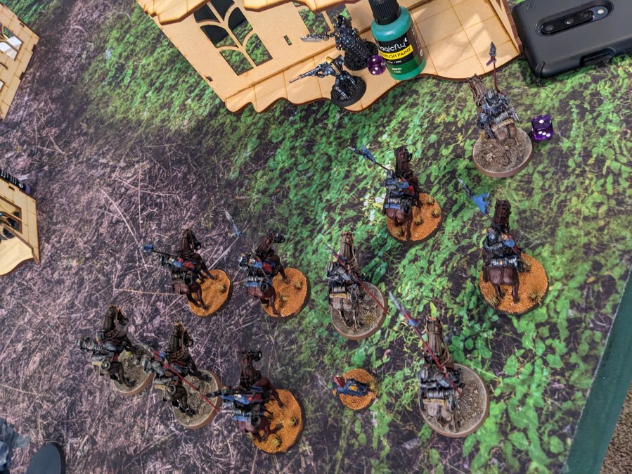 In Reserve, a full unit of Outriders and a third mounted Commissar prepared a daring flanking maneuver for the Tactical Squads.