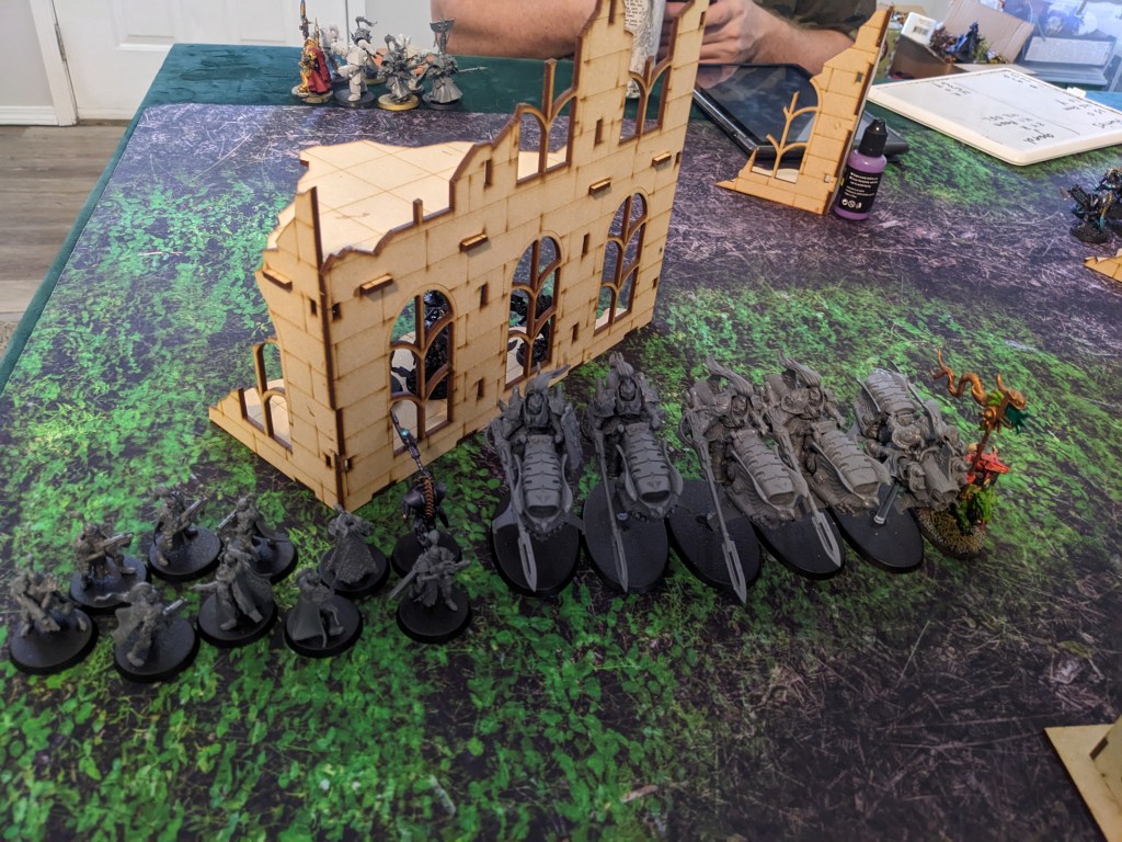 For the purpose of this play test for our new Space Wolf Chapter Supplement, we had to proxy the models. If the Space Wolves appear to be Custode or Necrons in anyway, it is the Chaos god Tzeentch playing trickery with your eyes and mind. Please see your local Commissar for a quick fix.