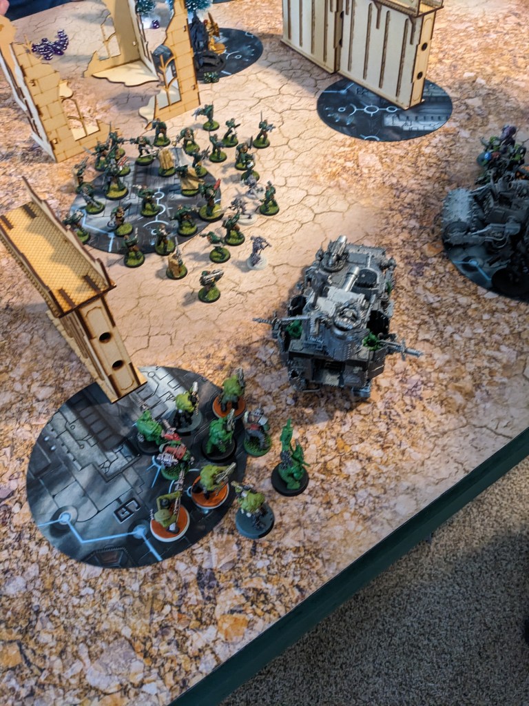 Orks carried the bulk of the fighting. By bringing such a heavy mechanized infantry list they were able to draw out the game and bleed the 3 death balls I built over the course of several turns with minimum risk to themselves.