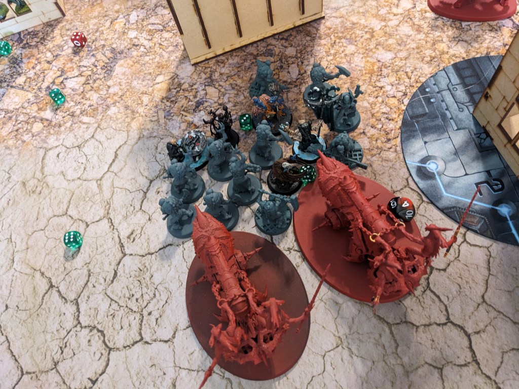The Aberrants swarmed the Eightbound thanks to the Kelemorph’s ability, cutting them down where they stood! A confused Champion (who had just been Mind Controlled a moment earlier to slash up his demented brethren) was able to harm the Abominant before being cut down in turn.