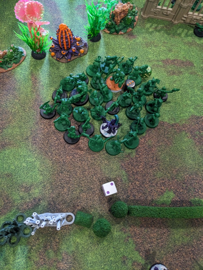 Meanwhile, the Eversor dived into a huge pile of Grots. The blender of destruction was severely hampered by 1s, but he lived to keep fighting.