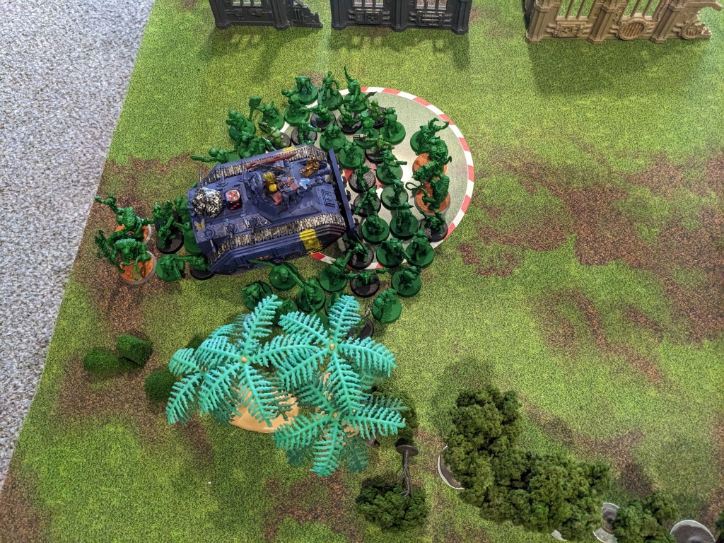The Chimera was well equipped for the Grot situation, but I was not about to drop my guys out anytime soon. The first Grot unit I encountered was mostly deleted.