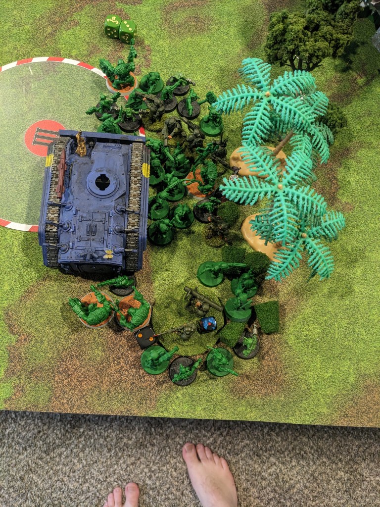 The Chimera succumbed to being dismantled by the Grots looting everything. The passengers jumped right into Melee to take their vengeance! (Accidental feet pic is a bonus)