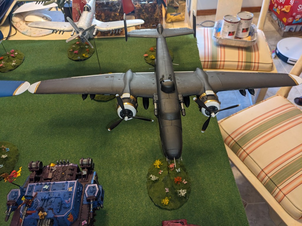 Tanks are denoted as Knights, and aircraft as Angels. Each one has its own storied history of conflicts of old, and are reborn as stripped down units to live up to their ancient ancestors. I do own Forgeworld Aircraft, but as a history buff I just really like using WW2 Allied planes to grab that British feel. The stands are made out of place holder stands for cards from my wedding. I used air dry clay for the base, and a lighter version for the card holder to build a form fitting cup so I would not have to store them stuck to the stands. The idea worked great for the standard fighters, but its a bit wobbly for the big ones. I made them the same size as Valkyrie bases by tracing one out on wax paper for each one.
