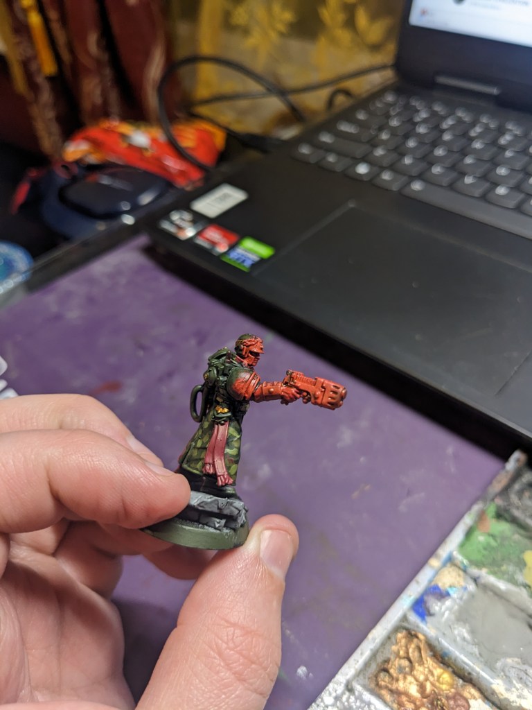 I was recently messing around with contrast paints and experimenting with using them instead of washes to blend colours for lighting effects. I am by no means an expert painter, but it came out really well and some people asked how it was achieved. I took pictures throughout and will break it down for you here!
