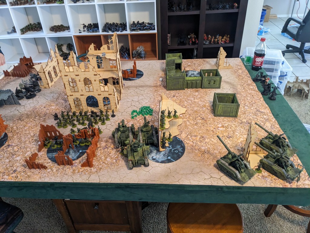 The fight at the command building lead to an impressive array of destruction. A particularly robust Refractor Field barely Kept the Lord Commissar alive, but it held. All of the other Traitors were slain.