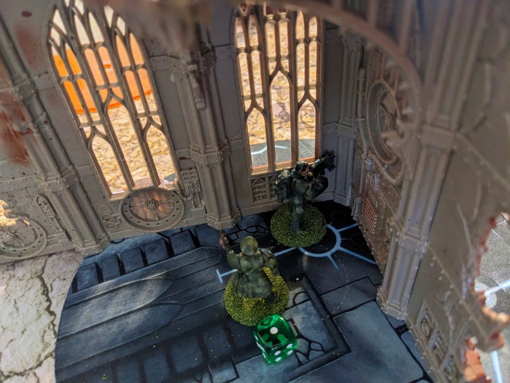 Trajann finished off the last sentinels, with an explosion that hurt him in the process as the Custode made it to the Disciples. They fought back with the Commissar taking the brunt of the beating through a poor attack on the Custode’s part. The Traitor Champion had a Powerfist, and was able to deliver a solid upper cut.